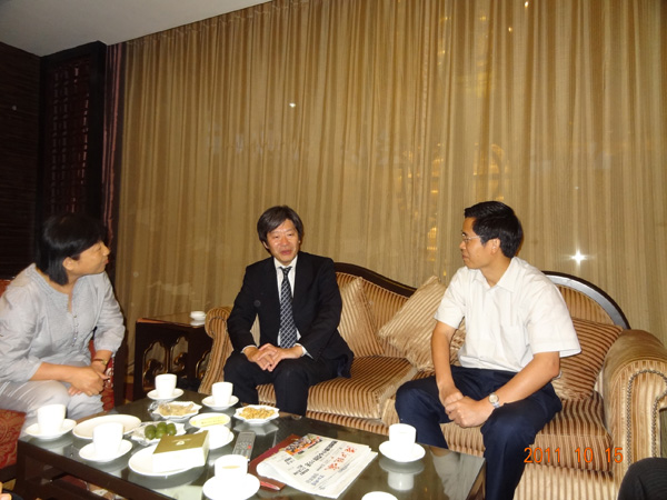 湛师新闻网10月17日讯 10月15日下午,我校与日本社团法人国际产学交流协会合作签约仪式在办公楼一号会议室举行。会后,校领导罗海鸥院长会见了客人并赠送了学校的纪念品。院办主任、国际交流与合作处邓逢光处长、教务处程可拉处长、外国语学院孙卫东书记、冯彩莲副书记、日语系主任陈俊英教授、国际交流与合作处郑志军副处长以及陈婵娟老师与远道而来的社团法人国际产学交流协会理事浜田睦路先生和日本任仕达株式会社北京代表处所长刘占富先生举行了会谈。