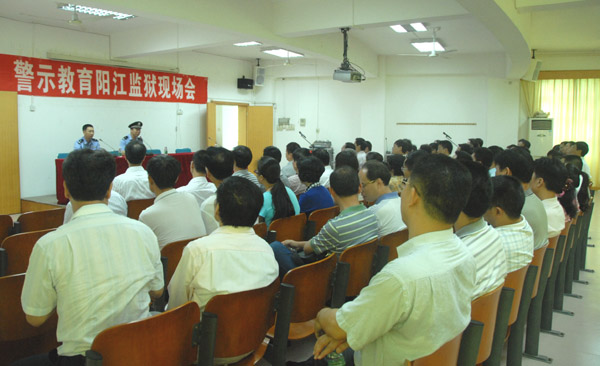 参观结束后,在监狱召开了警示教育现场会。首先,监狱领导为大家介绍阳江监狱的基本情况;随后2名服刑人员分别现身说法。大家从中深深地领悟了他们失去自由的痛苦与悔恨,违纪违法所付出的惨痛代价;接着,学校党委副书记、纪委书记黄钢作了讲话,黄书记首先对阳江监狱各级领导提供的支持和帮助表示感谢,然后谈了自己参加警示教育活动的感悟。他指出:学校领导重视党风廉政建设,就是对干部的爱护,在家的学校领导班子成员都来参加了这次警示教育活动,希望大家干干净净做事,干事不出事。最后,黄书记向大家明确提出了“三不要、三提高”的要求。“三不要”就是不要冲破法律底线、不要冲破道德底线、不要冲破纪律底线。“三提高”就是要提高学习的自觉性、提高维护执行国家法律法规的自觉性、提高监督别人和接受监督的自觉性。