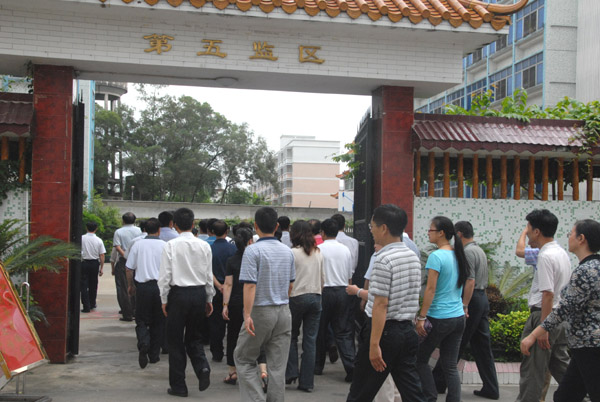 进入监狱第五监区参观。