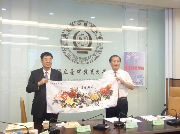 校领导胡克伟代表学校向台中教育大学赠送纪念品