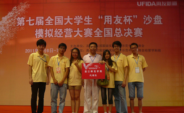 据悉,本次比赛设一等奖、二等奖、三等奖。广东省的深圳大学、广州大学、北京理工大学珠海学院、广东海洋大学、广东技术师范学院天河学院等五所高校也赴京参赛,他们均荣获三等奖。一年一度的“用友杯”沙盘模拟经营大赛总决赛,是中国高校经管类最具影响力的比赛。本次大赛由高等学校国家级实验教学示范中心联席会主办,用友新道科技有限公司承办、北京工商大学等协办,参赛队伍涵盖全国31个省、直辖市、自治区几千所高校,经过历时近四个月的校内赛和省市选拔赛后,北京化工大学、四川大学、南京财经大学、中国青年政治学院、天津师范大学、上海海洋大学等91支本科院校代表队脱颖而出,齐聚北京用友软件园一决雌雄。我校派出以商学院陈智崧为指导老师,商学院08级杨康贤(市场营销)、罗舒文(市场营销)、刘成龙(市场营销)、邹晓军(电子商务)、陈海健(国际贸易)、林鸿坤(工商管理)六位同学组成的代表队,以广东省赛区特等奖的身份杀入了全国总决赛,并最终荣获二等奖。
