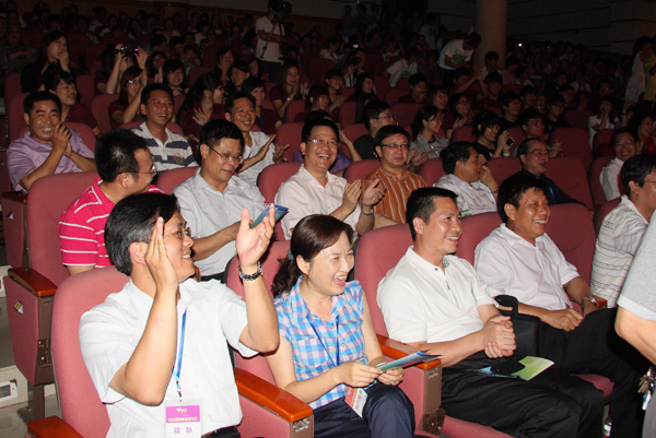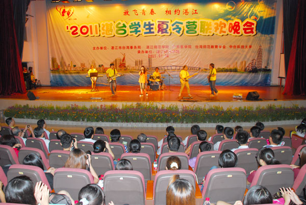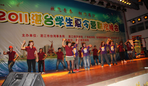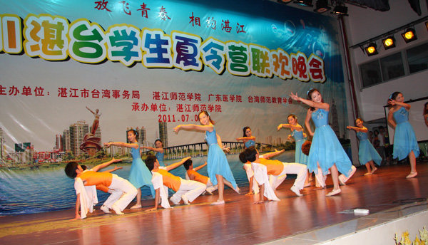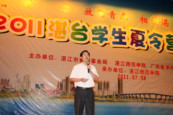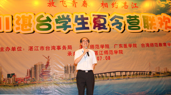 湛师新闻网7月10日讯 情系中华,相约湛江,8日晚,由湛江市台湾事务局、湛江师范学院、广东医学院、台湾师范教育学会、中台科技大学联合主办的2011年湛台大学生夏令营联欢晚会在我校音乐厅隆重举行。台湾代表总领队、台湾师范教育学会理事长、台中教育大学校长杨思伟,台湾代表团总顾问冯观富教授、中台科技大学校长李宏谟、台北市立大学领队蔡宏恩,湛江市委副秘书长刘耀千,广东医学院副院长颜大胜,我校罗海鸥院长、李江凌副院长及其他领导、老师、嘉宾出席了本次晚会。
