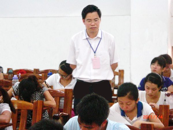 湛师新闻网7月5日讯 昨天是我校学期末考试第一天,校领导罗海鸥院长在教务处、工会负责人和院办有关同志的陪同下,到各教学楼试室巡考。
