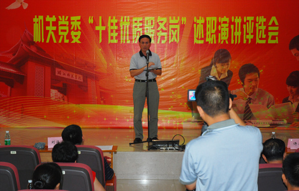 据悉,机关党委为有效地提高机关管理水平和服务质量,于2009年4月开始组织和开展创建机关优质服务岗活动,得到了机关各部门的积极响应,共有55个机关科室参与创建。在各单位进一步推选的基础上,今年4月研究确定了25个科室作为机关优质服务岗。在这25个机关优质服务岗中,机关党委组织进行了创建情况展示并由各党支部组织本单位干部职工进行投票推荐。根据机关全体干部职工每人一票的投票结果,选出得票较高的15个优质服务岗作为今次“十佳优质服务岗”的述职演讲候评对象,再在述职演讲后从中选出“十佳优质服务岗”。可以说,“十佳优质服务岗”是经过基层推荐、群众投票、材料公示、述职演讲和专家评选等几轮选拔后产生的。机关党委组织开展的评选“十佳优质服务岗”活动,是机关党建工作的创新,树立了机关优质服务的榜样,激发了机关干部创先争优的热情和干劲,有效地推进了机关作风建设。