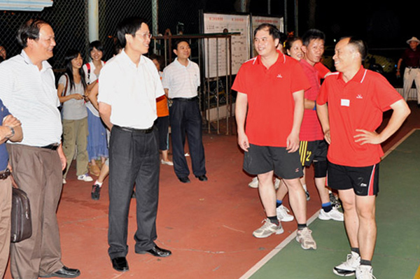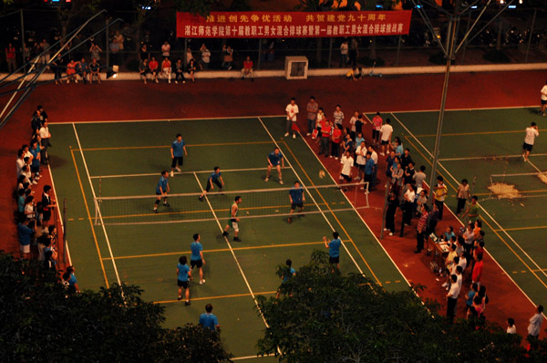 湛师新闻网5月27日讯 经过15天的激烈角逐,25日下午,由校工会、校党委组织部主办,体科院、教工排球俱乐部承办的我校第十届教职工男女混合排球赛第一阶段决赛在燕岭区排球场激情开赛。赛场上不断上演一幕幕扣人心弦的争冠大赛。罗海鸥院长、邵乐喜副院长及300多名教职工到场观看了比赛,为球员加油打气。