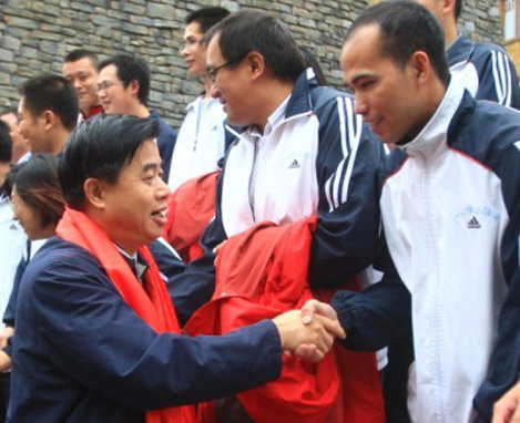 年3月,广东省黄华华省长慰问广东对口援建人员时与邵景伴亲切握手。