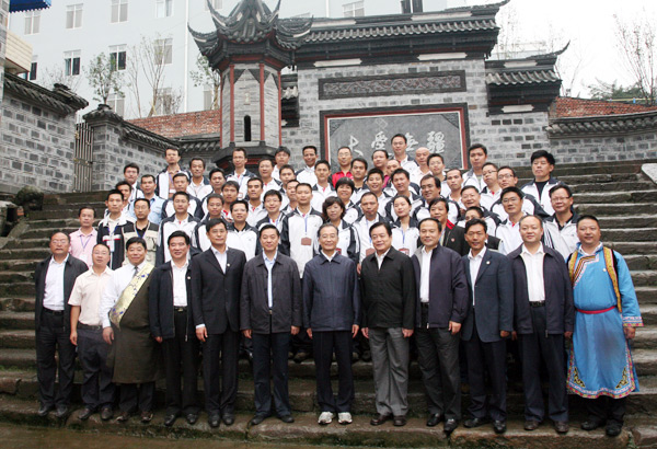 年9月26日,温家宝总理与邵景伴(四排右三)所在的佛山援建队合照。