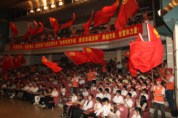 随后,李发武副书记要求各级团组织要学习领会大会精神,要求广大团员青年振奋精神、刻苦进取、创先争优,争当一名有理想、善学习、讲道德、懂自立、勇奋斗的新一代青年,为学校发展、广东幸福和社会和谐贡献青春、智慧和力量!