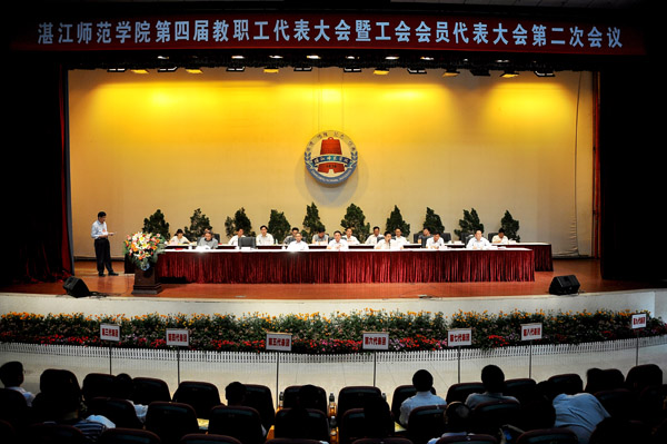接着,邵乐喜副院长和胡克伟同志分别宣读了《关于院长工作报告的决议》(草案)、《关于教代会暨工代会工作报告的决议》(草案)、《关于<湛江师范学院“十二五”发展规划>的决议》(草案)、《关于<湛江师范学院首次岗位设置和人员聘用实施方案>的决议》(草案)等四项决议。这四项决议获得了与会代表的一致通过。
