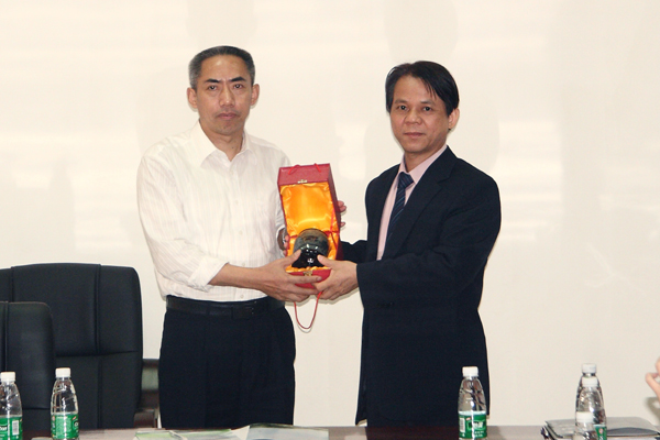 欢迎会上,首先播放我校宣传片。紧接着刘周堂副院长致欢迎词并介绍学校情况,主要从我校招生情况、办学条件、师资队伍、国际交流与合作等方面作了详略得当的介绍。刘周堂副院长先回溯两校交流合作的历史。刘副院长认为:台湾和大陆同根同源,语言一致,方便我校与台湾师范院校的学术交流与探讨。我校与台中教育大学交流密切,互为关系友好的兄弟院校。希望以后来往更密切一些,也祝愿台中教育大学的师生们生活愉快,交流顺利。随后台中教育大学侯桢塘总务长发言。侯桢塘总务长先肯定我校的成绩,对我校取得教学成果表示祝贺和敬佩。他认为我校学风良好,学生学习认真,老师人才聚集,希望更深层次的互动交流日后能更频繁。侯桢塘总务长接着介绍了台中教育大学的基本情况。然后冯观富教授以师长的身份与大家交流,认为湛江是个宜人的城市,人情味浓郁,而湛师更是令人流连忘返,并希望台中教育大学毕业的学生能够来湛师就业。冯观富教授形象和蔼,言语幽默风趣,用一席话赢得了两岸大学生的喜爱。欢迎会上双方就两校学生交流、教师交流及合作研究等话题进行了充分的交流和探讨,并同意今后将逐步展开各项合作,最后双方互赠了纪念品并合影留念。接着台中教育大学的师生们在邓逢光主任等人的陪同下参观了校园。