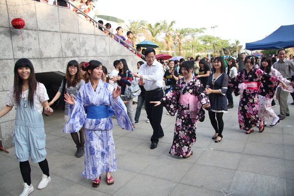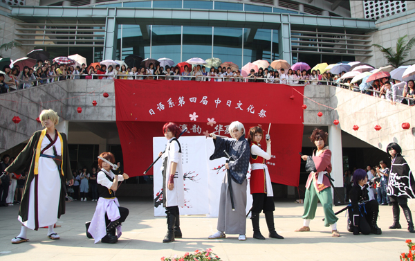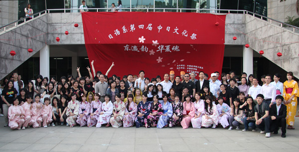 湛师新闻网4月9日讯 为促进中日文化交流,促进了解,今天,外国语学院日语系在新区体育训练馆正门举行了第四届中日文化祭。我校罗海鸥院长、院办邓逢光主任,外语院党委孙卫东书记、冯彩莲副书记以及该院日语系的部分老师出席了本次活动。此外,湛江一番寿司店的经理、湛江沃尔玛总经理等社会各界的朋友亦出席了活动。