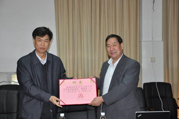 邵乐喜副院长对杨改学先生的个人事迹及取得的学术成就作简要介绍之后,为杨改学先生颁发了由学校罗海鸥院长亲自签名的聘书,聘其为我校客座教授。 随后,杨改学教授为与会人员作了题为《教育信息化对教育发展产生革命性影响》的学术报告。杨教授首先从《国家中长期教育改革和发展规划纲要(2010-2020)》出发,引用了多个鲜活例子,总结了教育技术在我国发展的三个阶段。然后,杨教授分别从教育思想与观念、教材的概念与形式、教学环境、学习型社会的形成等几方面,重点阐述了教育信息化使教育发生了革命性的变化。