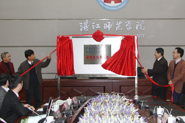 随后,我校刘周堂副院长、邵乐喜副院长、华工研究生院李忠副院长、华工学院彭峰副院长共同为“华南理工大学湛江师范学院研究生培养基地”揭牌。