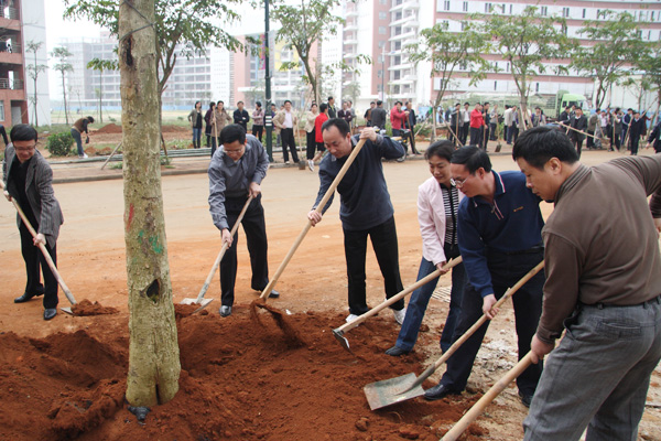 湛师新闻网3月14日讯 为了美化我校的校园环境,同时庆祝我国的第32个“植树节”,今天上午,学校义务植树活动在雷阳区燕岭大道西举行。校领导梁英、罗海鸥、黄钢、李永全、李江凌、邵乐喜、胡克伟,机关各部处及二级学院负责人,教职工代表参加了植树活动。