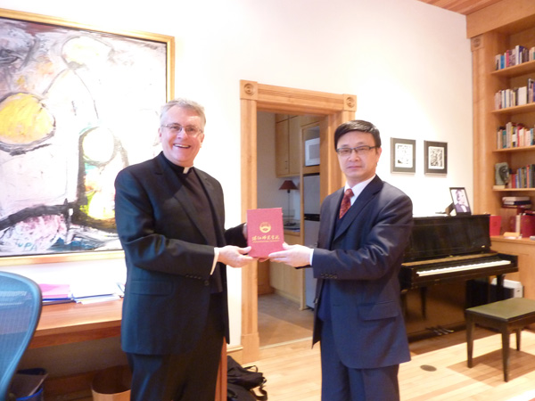 李副院长与圣•约翰大学校长Father Robert交换纪念品