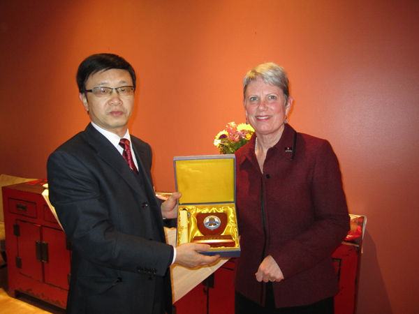 25日晚餐,CSB院长Mary Anne以该校最高接待规格──家宴,宴请了交流团全体师生。双方交换了纪念品,表达了长期友好合作的愿望。