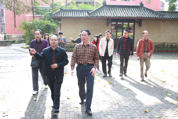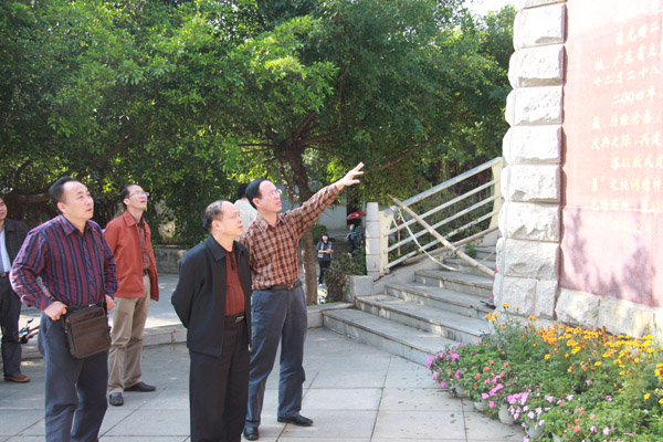接着,杨开乔院长一行在梁英书记的陪同下参观了校园。梁书记介绍了古榕广场的碑文、七棵古榕树、最早的教学楼,以及湛师早期的耕耘者清代进士陈璸等三位清代官员,并赞誉他们对湛师的发展所作出的贡献。百年师范纪念塔是湛师历史所在,进一步加深了杨开乔院长等一行对我校历史的了解。“书院精神,高山仰止;百年师范,人文昌明” 。梁书记向杨院长介绍了屹立在百年师范纪念塔上我校早期校长谭平山。谭平山为湛师发展做出了很多贡献,他的事迹激励着一代又一代湛师人不断创造湛师的辉煌。