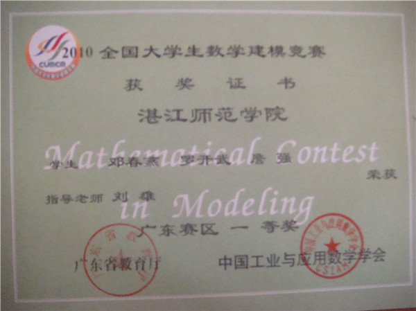 湛师新闻网1月25日讯 日前接到广东省教育厅《关于公布2010年全国大学生数学建模竞赛广东赛区获奖名单》(粤教高函【2011】2号文)的通知,我校学生获得广东省一等奖2项和二等奖1项的佳绩。
