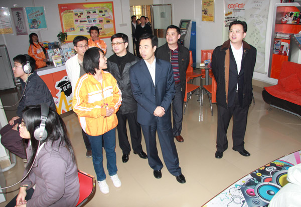 杨松副部长一行仔细参观宣传栏、学生会、青联会、社联会等学生机构办公室的情况,对我校主要学生机构的建设情况提出了意见和建议,就如何加强共青团的平台、阵地建设,如何增加共青团吸引力、凝聚力和战斗力等问题给予了具体的指导。