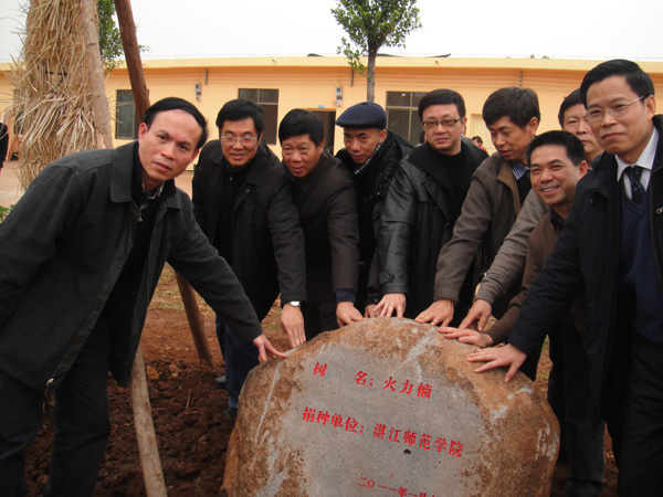 会议期间,徐闻县委、县政府盛情接待了与会人员,并在龙泉湾生态林保护区划出地块,为粤西四所高校捐种象征着友情、品质和希望的“火力楠”树苗。我校领导在大家见证下共同种下了一颗火力楠,并在树苗旁冠有“湛江师范学院捐种”的石刻前合影留念。