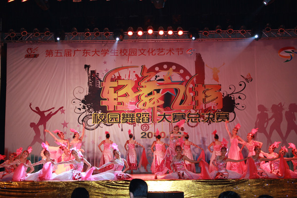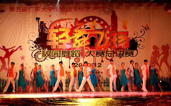 在总决赛中,来自广州、东莞、汕头、肇庆、湛江等赛区的选手齐聚一堂、大秀风采。我校大学生艺术团舞蹈队的同学们表演的群舞《他们,她们》以轻灵飘逸的舞姿为全场观众描绘了一幅大学校园男生女生情谊真挚、共同成长的温馨画卷。专业组群舞《江山如画》以婀娜的舞姿和轻盈优美的舞步为观众展现了一幅壮丽河山图。选手们深情的演绎、优美的舞姿得到了评委和观众的一致好评,赢得了一阵阵雷鸣般的掌声。最终分别获得了业余组一等奖和专业组二等奖的好成绩。