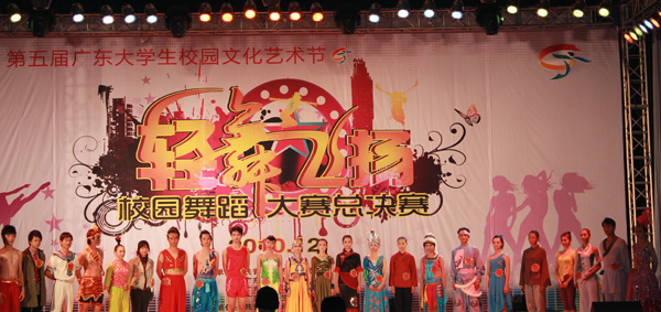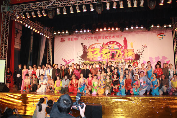 湛师新闻网12月29日讯 12月27日晚,由共青团广东省委员会、广东省教育厅、广东省文化厅、广东省学生联合会联合举办的第五届广东大学生校园文化艺术节之“轻舞飞扬”校园舞蹈大赛总决赛在华南师范大学隆重举行。我校参赛选手在校团委李粤书记、艺术团指导老师音乐学院舞蹈系朱培科主任和校团委莫琼玉老师的带领下前往参赛,并在此项大赛中取得了历年来的最好成绩:群舞《他们,她们》获得了业余组一等奖,群舞《江山如画》则获得了专业组二等奖,这也是粤西高校在全省文化艺术节舞蹈比赛中获得的最好成绩。