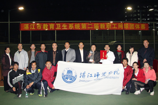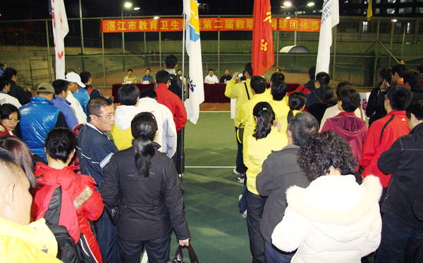 湛师新闻网12月28日讯 昨晚,历时两天的湛江市教育卫生系统教职工第二届网球团体赛圆满地落下了帷幕,并在我校雷阳区网球场举行了闭幕式。市人大常委会副主任、市总工会主席李连、我校刘海涛、黄钢等领导以及各代表队领导出席了本次闭幕式。