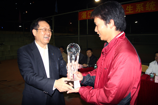 裁判长首先宣读比赛结果。三等奖由广东医学院附属医院代表队和湛江第二人民医院代表队获得,二等奖由广东医学院代表队和湛江出入境检验检疫局代表队获得,而作为此次网球团体赛东道主的我校代表队则喜获一等奖。