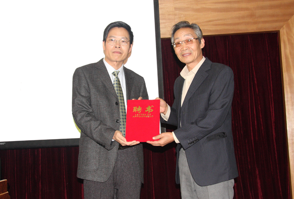 在邵乐喜副院长对包国庆教授的个人事迹及取得的学术成就作简要介绍之后,罗海鸥院长为包国庆教授颁发聘书,聘其为我校特聘教授。
