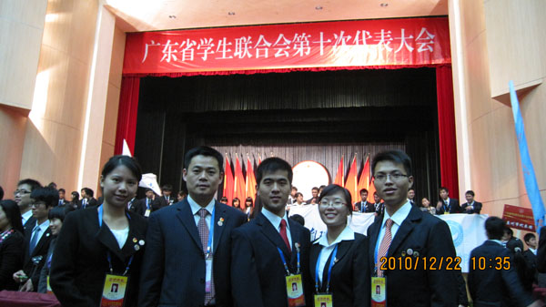 据悉,广东省学生联合会代表大会每五年举办一次。我校参加本次大会的学生代表均由校学生会主席团及各部部长,各二级学院学生会主席团成员直接投票选举产生。充分体现了公平,公正,公开的选举原则。在大会的筹备和召开期间,校学生会按照大会筹委会的要求积极组织广大同学参与此次大会的相关宣传动员活动,扩大了大会在我校师生中的影响,产生了良好的反响。