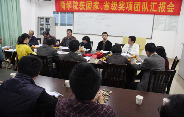 湛师新闻网12月25日讯 昨天,商学院获国家、省级奖项团队汇报会在燕雷楼202室召开,副校级干部胡克伟、学生处黄达海处长、教务处程可拉处长,以及商学院王亚新院长、吴进书记、梁晋副书记等参加了会议。