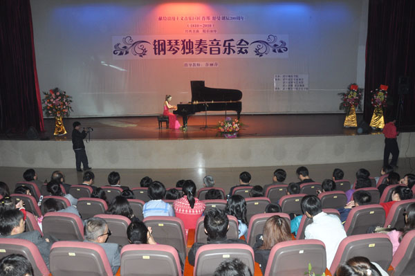 12月21日晚,在圣诞和新年来临之际,我校举行了“纪念伟大的爱国主义音乐家、钢琴诗人肖邦,和德国浪漫主义音乐大师舒曼诞辰200周年” 音乐会,暨谷丽萍副教授钢琴教学汇报音乐会。