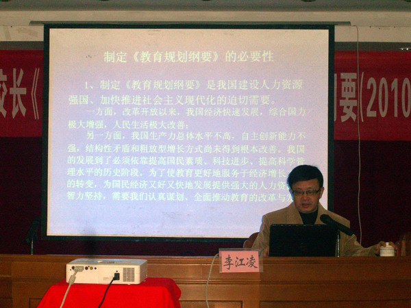 据了解,此次培训是在我校继续教育学院多方努力与湛江市教育局的大力支持下进行的,目的是通过《纲要》解读,使湛江市中小学校长准确地理解把握《纲要》的精神实质,以便在工作中更好地贯彻实施,促进我市基础教育的改革和均衡发展。培训班共举办四期,分别由我校副院长李江凌教授、钱林晓博士、游梓然博士、王栋副教授授课。第一期为小学校长培训,第二、三期为初中校长培训,第四期是高中校长培训,参加培训人数预计600人左右。