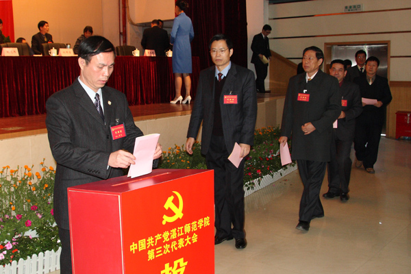 随后,大会以无记名投票的方式差额选举我校第三届党委委员和新一届纪委委员。在充分酝酿的基础上,代表们有序地走向红色的票箱,庄严地投下了神圣的选票。经民主选举,王列盈、邓妍妍、冯宗财、刘周堂、刘海涛、李忠、李永全、李江凌、吴华明、张飞燕、陈恕平、罗海鸥、莫春生、黄钢、黄达海、梁英、彭权群、程可拉、谢应明(按姓氏笔画排序)19位同志当选为我校第三届党委委员,冯汝智、李干、何征强、陈福、林森、黄钢、曹巧、韩明德、熊家良(按姓氏笔画排序)9位同志当选为新一届纪委委员。
