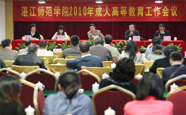 湛师新闻网12月15日讯 11日,我校举行了2010年成人高等教育工作会议。学校李江凌副院长,继续教育学院张剑伟院长、党总支林艳萍书记,财务处梁钰副处长以及我校13个二级学院院长(书记)、主管成教工作副院长出席会议,参加会议的还有来自全省各地28个校外教学点的负责人。会议由继续教育学院卢江副院长主持。