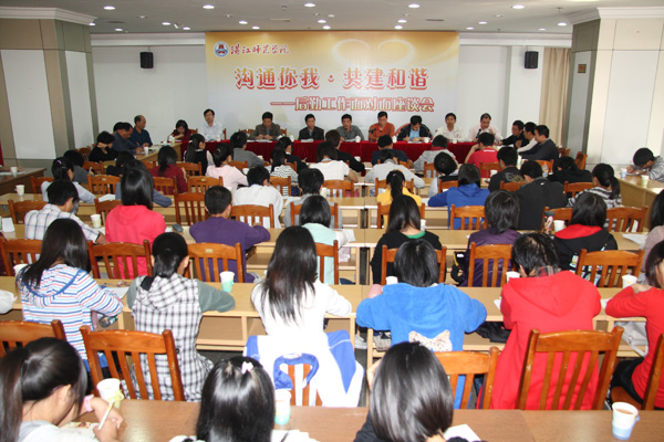 湛师新闻网12月3日讯 昨天,我校后勤产业处在学术交流中心三楼会议厅召开了以“沟通你我,共建和谐”为主题的师生座谈会,校领导李永全副院长出席了会议。与会人员还有后勤产业处、基建处、保卫处、学生处、财务处、团委、一卡通中心、饮食中心、热水中心、学生公寓中心、物业中心、水电中心、纯净水厂负责人以及各二级学院学生代表。会议由后勤党总支书记冼冠强主持。