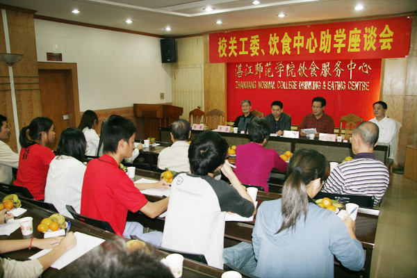昨日下午,学校关工委和学校饮食服务中心携手在鸿园五楼举办助学座谈会。校领导刘海涛副书记、关工委委员兼饮食中心总经理刘彪、关工委李德主任、离退休工作办公室主任王仁谦等相关领导,以及各二级学院的两名学生代表共四十余人参加了本次座谈会。