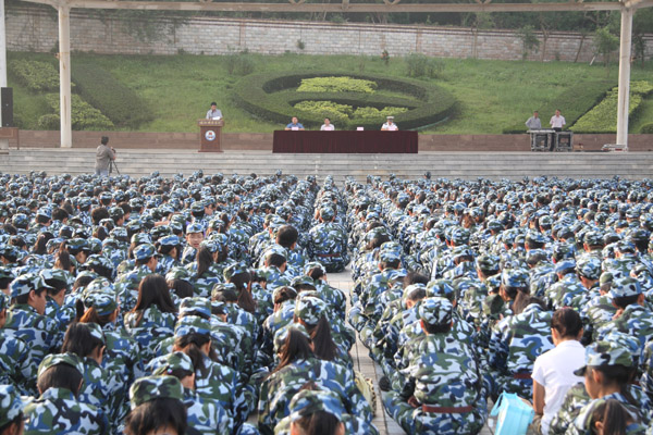 据悉,我校2010年新生军训,从10月9日至11月2日止,分两批进行,均由海军91487部队承训。第一批参训的有八个学院新生共两千八百多人;第二批参训的为商学院、信息科学与技术学院、生命科学与技术学院、化学科学与技术学院、生命科学与技术学院、体育科学学院约两千六百名新生。