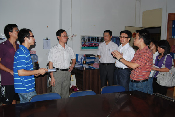 梁英书记、李江凌副院长一行还走进了校学生会办公室,与正在开会的学生干部们进行了亲切的交谈。梁书记表示,学校将会为我校学子搭建更多、更好的锻炼平台,提高他们的综合素质。此外,梁书记叮嘱校学生会的干部要时刻注意劳逸结合,争当一名学习好、身体好、能力强的优秀学生干部。
