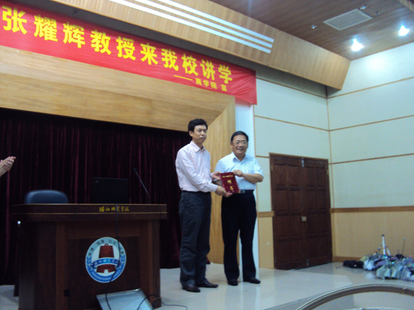 报告伊始,邵乐喜副院长为张耀辉教授颁发“客座教授”聘书,并希望两校今后能加强交流与合作。