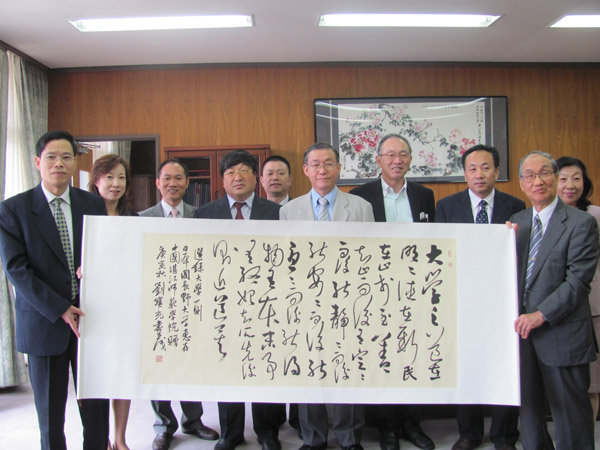 26日,访问团在我校客座教授、长野大学小川教授陪同下,拜访了日本教师教育研究会前会长中野光教授。中野光教授及其夫人在家里非常热情周到地接待了访问团一行。首先,在谈到教师教育人才培养模式问题时,中野光教授毫不保留地讲解他对教师教育的独到见解,并把自己刚出版的专著赠送给罗院长;其次,在谈到师范教育理念时,中野光教授为访问团展示了摆在他书桌上的中国知名教育家方明亲自书写赠送的纪念品,上书陶行知先生的名言“千教万教,教人求真;千学万学,学做真人”。由此让访问团感到中日教育家之间那种纯朴真挚的友谊和互敬互爱的情怀。当我们得知《学校改革史的原像》是在他双目失明的情况下完成的,而现已81岁高龄,又准备出版新作,大家为他那种对教育的虔敬和对学术不懈追求的执着精神和顽强毅力所折服。当罗院长想引进他的著作在中国出版时,中野光教授毫不犹豫地决定把这两本书交给我校翻译成中文出版。