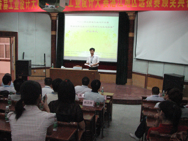 湛师新闻网9月18日讯 湛江市2010首届工业设计暨“省长杯”工业设计大赛湛江地区选拔赛已圆满落幕。今天,物理学院在榕楼学术报告厅举行该次大赛颁奖典礼。我校邵乐喜副院长、物理学院李忠院长、刘贵昂书记、湛江市人力资源和社会保障局马骏副局长、我校机电工程系主任、广东海洋大学工业设计系主任以及湛江市各工业代表出席本次颁奖典礼。