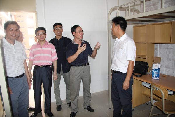 在各二级学院新生报到大本营,梁书记细致了解了新生报到接待情况,对参与接待新生的工作人员表示感谢,希望大家以良好形象出色完成新生接待任务。在新生绿色通道现场,梁书记听取了学生处黄达海处长对迎新工作的汇报,向在现场坚守工作岗位的二级学院负责同志表示了慰问和感谢。梁书记表示,很高兴看到2010级新生顺利来校报到,学校将为同学们学习成长提供优良的设备与场所,希望同学们在校期间能够学有所成。到新生宿舍察看时,梁书记强调要及时安排好新生的住宿,要求宿舍建设管理人员确保新生入学的第一天有水有电,让新生有个舒适的生活环境。在宿舍中与新生及家长交流时,梁书记表示请家长放心,“学校会尽力帮助您的孩子,让她在这里能够更好地成才”,同时希望新同学能够尽快熟悉并适应大学环境,融入到湛师这个大家庭中来。