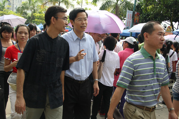 湛师新闻网9月12日讯 9月11日是我校2010级新生入学报到的日子。上午一早,校领导梁英书记、罗海鸥院长、李永全副院长、李江凌副院长等在相关职能部门负责人的陪同下,分别到2010级新生报到现场察看指导工作。