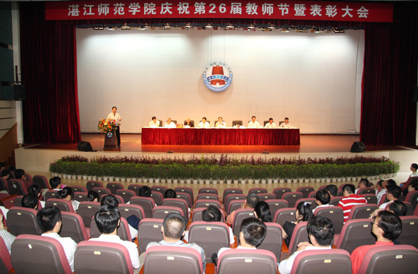 湛师新闻网9月11日讯 金风送欢笑,丹桂花香飘。昨天下午,我校在音乐厅隆重举行了庆祝第26届教师节暨表彰大会。全体校领导、全校正科级以上干部、讲师以上教师、离退休教师代表以及近两年新引进教师出席了大会。大会由学校党委梁英书记主持。