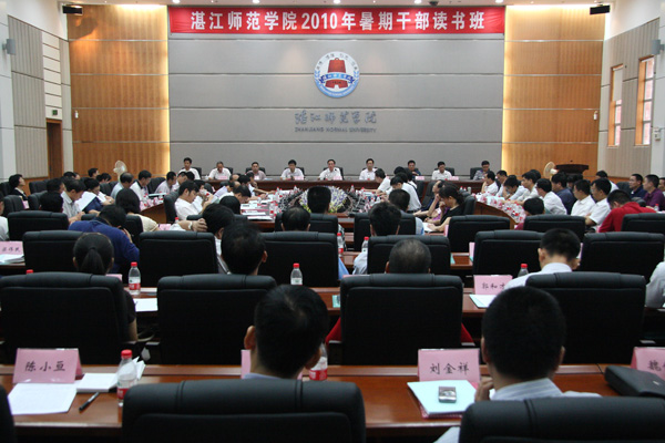湛师新闻网9月7日讯 为了积极贯彻落实全省全国教育工作会议精神及国家和省中长期教育改革与发展规划纲要,深入推进学校人才培养模式改革,我校于9月4日至5日上午举办2010年暑期干部读书班。在读书班上,校党委梁英书记传达了全省教育工作会议和全省高校领导干部暑期读书班精神,罗海鸥院长围绕学校创新人才培养模式作了主题讲话,刘周堂副院长就对如何把创新人才培养模式落到实处作了发言,并进行分组讨论与汇报发言。读书班还邀请了汕头大学副校长王伟廉教授作专题辅导报告。全体学校领导、副处级以上干部共154人参加了读书班学习。