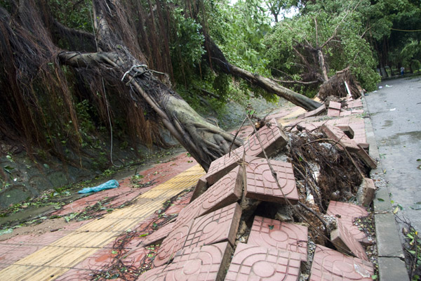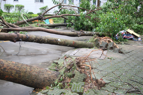 22日下午2时左右,强台风“灿都”如期而至。狂风裹挟着暴雨,掀起四个多小时的冲击,整洁美观的校园顿时飞水横流,地上随处可见残枝落叶,不少树木东倒西歪,有的甚至被连根拔起,校道不少路段已塞满枝叶......