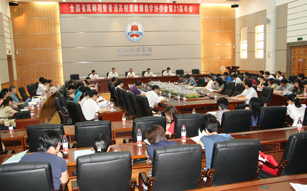 湛师新闻网7月13日讯 昨天,全国省属师范暨普通高校思想政治理论课教学协作会第21届年会在我校国际会议厅隆重举行。此次年会由广东省高校思想政治理论课研究会和我校共同承办,广东省教育厅李小鲁巡视员、全国省属师范暨普通高校思政课教学协作会郑又贤会长、我校党委梁英书记、罗海鸥院长等领导,以及来自全国20多所院校的40多名专家学者和我校思政部全体教师出席了大会。大会分两个阶段进行。第一阶段的开幕式由我校党委黄钢副书记主持。