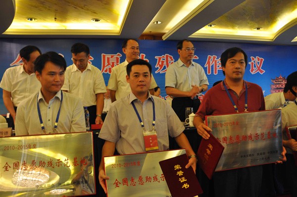 湛师新闻网7月10日讯 7月6日,全国志愿助残工作会议在武汉隆重召开,我校被中央文明办、民政部、中国残联等8部委授予“全国志愿助残示范基地”。中央文明办、团中央、民政部、司法部、全国妇联、老龄委、中国人民解放军总政治部、中国残疾人联合会中国残联等部委领导出席会议。各地残联分管副理事长、组联部主任,全国志愿助残示范基地和全国志愿助残阳光使者代表等共计130余人参加了会议。会议由中国残疾人联合会中国残联组联部张仪凤主任主持。