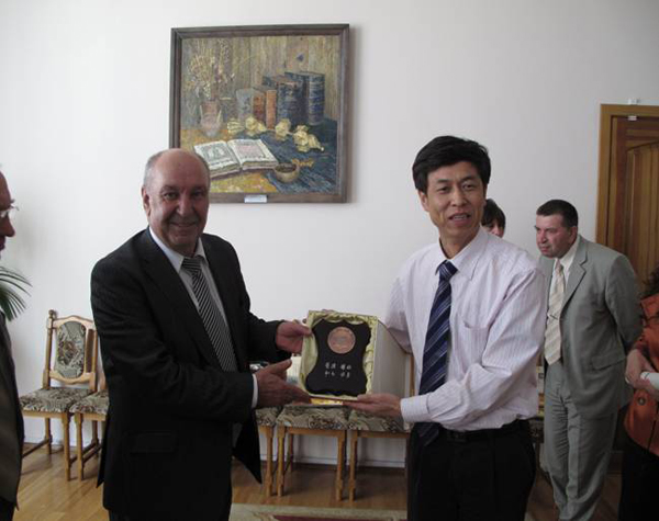 考察组一行于6月16日晚抵达目的地,次日,白俄罗斯国立师范大学校长Peter D. KUKHARCHIK(也是该国国家科学院通讯会员)等人热情接待了我校考察组。首先,Peter校长与邵乐喜副院长分别介绍了两校基本情况,然后就两校可能开展合作事宜进行了详谈,内容包括:白俄罗斯国立师范大学派出音乐、美术等专业教师到我校任教;我校中华武术教师到对方学校任教;吸引对方学生到我校学习汉语;我校学生赴白俄罗斯国立师范大学攻读硕士学位;两校开展国际交换生项目等。考察组还就该校硕士和博士入学条件、学费及住宿费等情况进行了详细了解。会谈气氛非常融洽,双方对合作意向达成了一致意见并签订了合作意向备忘录。据Peter校长介绍,该校与国外许多国家的部属院校签订有合作意向书,我校是与该校签订合作意向书的第一所省属院校,两校同为师范类高校,合作前景非常广阔。
